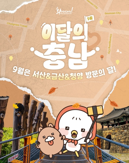 도는 매달 도내 시군 대표 관광지와 지역축제·행사(이벤트), 특별한 관광상품 등을 도 공식 사회관계망(SNS)과 충남관광 누리집을 통해 이달의 충남으로 알리고 있다.