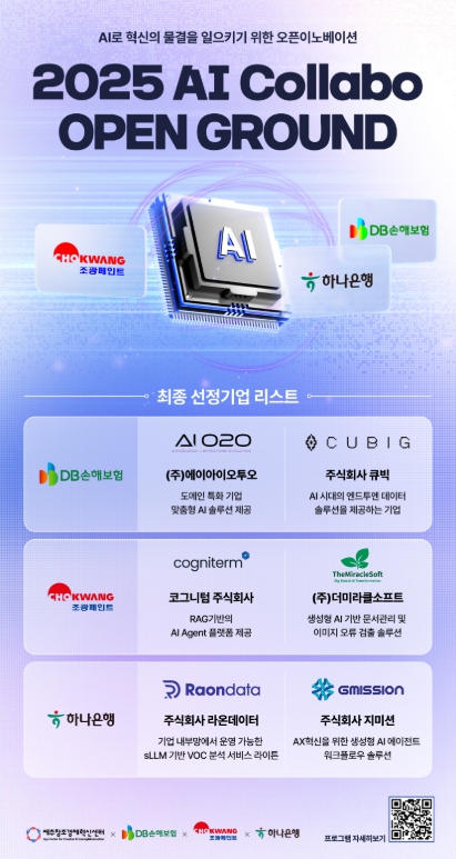 DB손해보험은 ‘㈜에이아이오투오’, ‘㈜큐빅’과 매칭되어 각각 △PC용 문서 파일을 모바일 환경에 최적화된 형태(파일·이미지)로 자동 변환·요약하는 기술, △LLM Capsule 기반 대용량 데이터 비식별화 및 GPT 활용 기술을 고도화하는 과제를 추진한다.