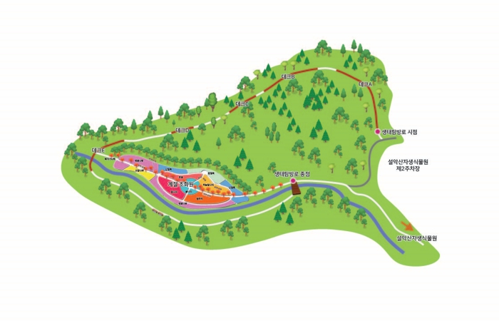 탐방로 주변에는 4,668㎡ 규모의 계절 초화원도 함께 만들었다. 초화원에는 교목(복자기) 41주, 관목(산철쭉 외 3종) 1만 6천여 주, 초화류(나리류) 4만여 본을 식재했다. 기존 자생식물원 공간을 확장하는 효과를 통해 사계절 경관을 강화하고, 보다 풍성한 볼거리를 제공할 것으로 기대된다.