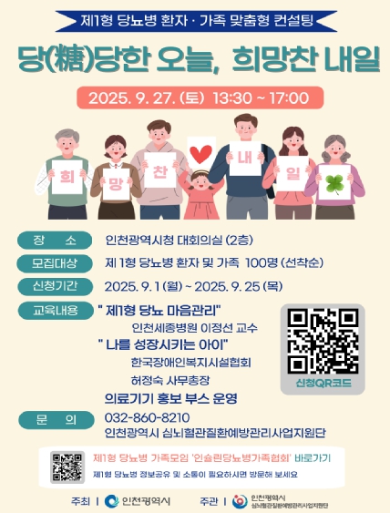 이번 컨설팅에는 약 100여 명의 환자와 가족이 참여할 예정이며, 관심 있는 시민은 9월 1일부터 25일까지 시 누리집에 게시된 온라인 정보무늬(QR코드) 사전 신청 또는 현장 접수를 통해 참여할 수 있다.