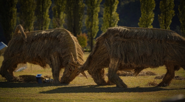 이번 설치작품은 2023년에 선보였던 ‘짚 황소’ 조형물에 이어 두 번째로 진행된 짚아트 프로젝트로, 지역민과 청소년이 함께 참여한 ‘주민참여형 예술활동’으로 완성됐다. 제작 과정에는 전문 작가가 참여하여 소 싸움의 역동성과 예술적 표현을 동시에 살렸으며, 여주시민, 청소년, 마을주민이 함께 협력해 완성도를 높였다.