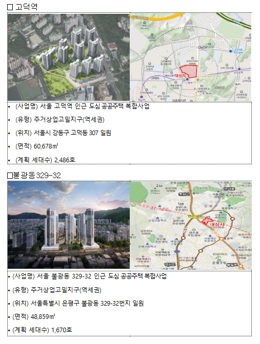 이번 지정된 복합지구들은 예정지구 지정 이후 주민 2/3 이상의 동의(토지면적의 1/2 이상)를 확보하고 중앙도시계획위원회 및 중앙토지수용위원회 심의를 진행하여 지구지정 절차를 완료했으며,향후 통합심의를 거쳐 ’27년 복합사업계획을 승인받고, ’30년 착공될 예정이다.