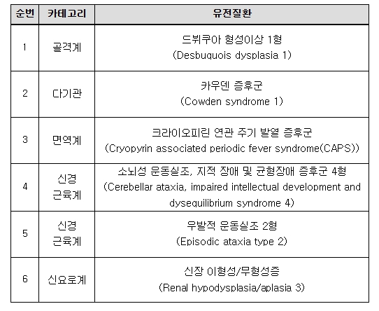 이번에 추가 선정된 질환은 2025년 10월 16일까지 접수된 질환을 대상으로 검토가 이루어졌으며, 접수된 질환 중 DYNC2H1-related short rib syndrome은 기존 검사 가능 유전질환과 동일질환이라 추가 선정하지 않았다. 또한 접수 질환 중 Atypical Teratoid Rhabdoid Tumor(ATRT)는 추가 검토가 진행 중이다.