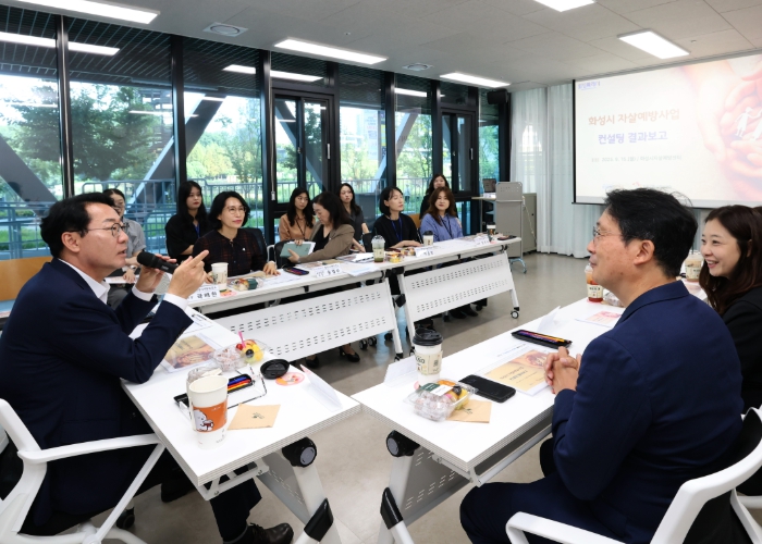 이어, 정 시장을 비롯해 화성시서부보건소장, 화성시자살예방센터장 등 10여 명이 참석한 가운데, 지난 7월 진행된 한국생명존중희망재단 자살예방사업 컨설팅 결과 보고가 진행됐다.