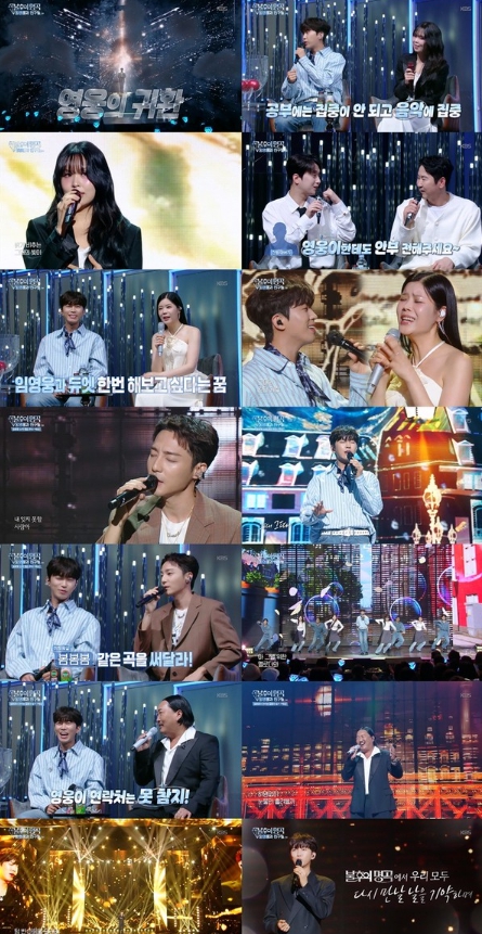 임영웅과 로이킴은 서로의 명곡을 바꿔 부르는 특별한 무대도 선보였다. 로이킴은 '사랑은 늘 도망가'에 자신만의 섬세한 감수성을 듬뿍 담아냈고, 임영웅은 '그때 헤어지면 돼'로 짙은 호소력을 뽐냈다. 무