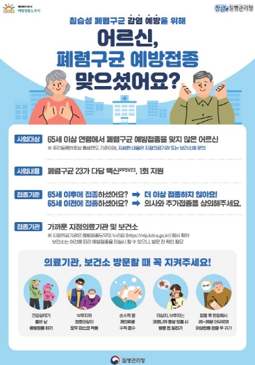 매년 접종하는 인플루엔자와는 달리 폐렴구균 예방접종은 65세 이상에서 한번 접종으로 침습성 폐렴구균 감염증을 50~80% 예방할 수 있다.