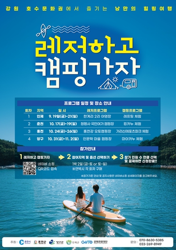 강원관광재단 최성현 대표이사는 “호수문화관광권은 가을의 맑은 하늘과 푸른 호수가 어우러져 최고의 풍경을 자랑하는 곳”이라며 “이번 프로그램을 통해 많은 분들이 호수문화권이 가진 매력을 마음껏 느껴보시길 바란다”고 전했다.