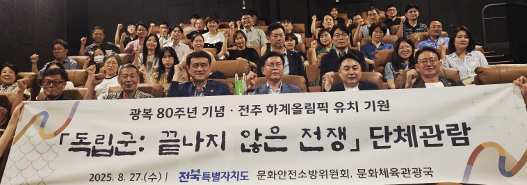 이정석 문화체육관광국장은 “이번 단체관람이 직원들에게 역사 교육의 기회를 제공하는 동시에, 지역 영화관 이용을 통한 문화소비 확산으로 이어지길 기대한다”며 “앞으로도 이러한 흐름을 생활 속에 정착시키고, 나아가 2036 전주 하계올림픽 유치에도 도민과 함께 힘을 모으겠다”고 밝혔다.