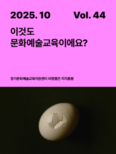 지지봄봄 44호 ‘이것도 문화예술교육이에요?’는 지난 43호(‘지지봄봄, 아직도 해요?’)와 마찬가지로 강렬한 제목으로 물음을 던진다. 흔히 ‘씬(scene)’이라고 불리는 문화예술교육 현장의 경계 속에서 실천자들이 느끼는 고민과 경험, 그리고 그 경계를 넘어서는 다양한 태도를 조명한다.