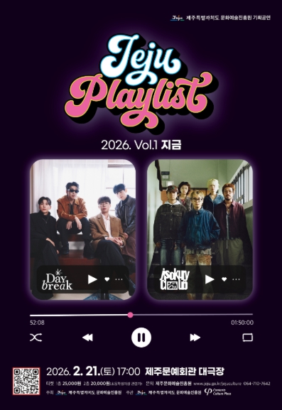 이희진 제주도 문화예술진흥원장은 “다양한 장르의 기획공연을 통해 도민에게 세대별·장르별 수준 높은 문화예술 향유 기회를 제공하고 관람 저변을 지속적으로 확대해 나가겠다”며 “2026년 첫 기획공연에 도민 여러분의 많은 관심과 참여를 바란다”고 말했다.