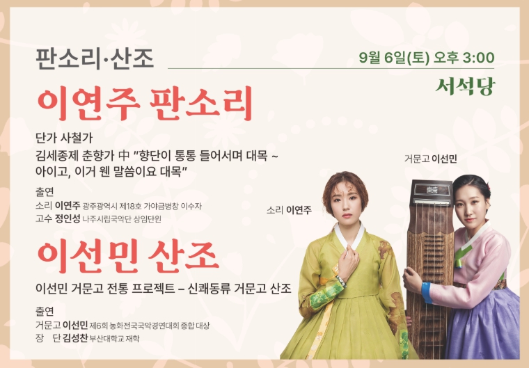 이번 무대에서는 재회 부분의 명대목인 ‘향단이 통통 들어서며~ 초경이경’에서 ‘아이고 이거 웬 말씀이오~’까지를 선보인다. 특히 물소리, 바람소리, 새소리 등을 음양으로 표현하는 판소리 특유의 기법을 통해 춘향의 고뇌와 감정을 섬세하게 전할 예정이다. 이날 무대에는 고수 정인성이 함께한다.