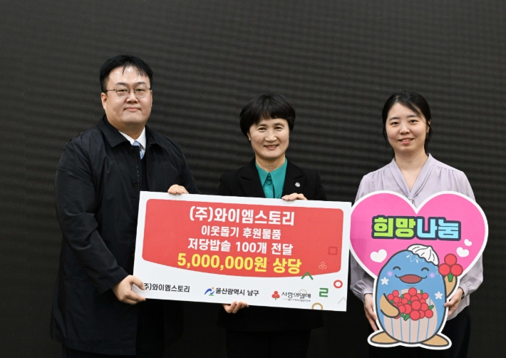 서동욱 남구청장은 “㈜와이엠스토리의 따뜻한 마음이 어려운 이웃들에게 큰 힘이 될 것이다”며 “이러한 나눔의 실천이 지역사회에 선한 영향력을 전하고 있다”고 감사의 뜻을 전했다.