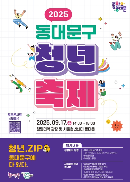 이필형 동대문구청장은 “청년은 지역의 미래를 이끌어갈 주역”이라며 “이번 축제가 청년들이 자유롭게 즐기고 서로의 경험을 나누며, 새로운 도전을 시작하는 계기가 되기를 바란다.”라고 전했다.