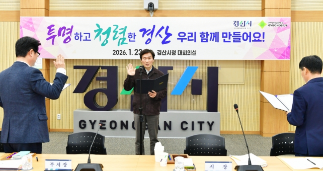 특히 이날 결의대회에서 경산시 전 공직자를 대표하여 조현일 시장이 청렴 실천 결의문을 직접 낭독하고 서약서에 서명하며 ‘청렴으로 신뢰받는 경산’을 만들겠다고 다짐했다.