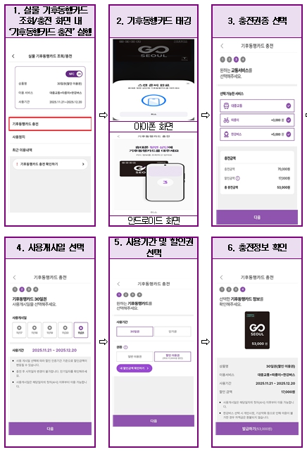 여장권 서울시 교통실장은 “누적 충전 1,600만 건이 넘은 기후동행카드는 서울 대표 ‘텐밀리언셀러 정책’이자 서울시민의 필수품이 되고 있다”며 “지속적인 서비스 개선을 통한 대중교통 이용 편의성을 획기적으로 높여 시민들의 이동권을 강화하고 동시에 대중교통 이용 확대로 기후대응이라는 시대적 과제도 달성하겠다”고 말했다.