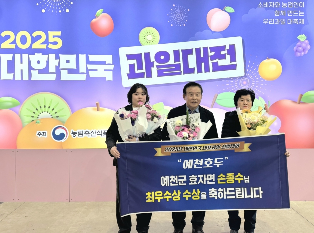 이번 수상에 따라 27일 대전컨벤션센터(DCC)에서 열린 ‘2025 대한민국 과일산업대전’ 개막식에서는 ‘예천호두작목반’ 회장인 손종수 씨가 최우수상 수상자로서 표창과 시상금 200만 원을 받는 영예를 안았다.