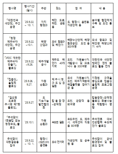 또한 제주개발공사는 ‘깨끗한 제주바다 만들기 쓰담달리기(플로깅)’ 활동을 9월 22일부터 26일까지 진행하며, 도내 40개 해안가에서 자원봉사자와 직원이 함께 청소활동에 나선다.