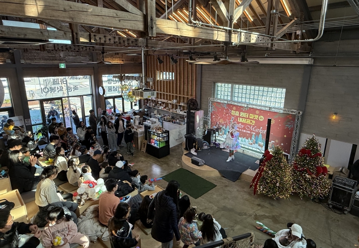 행사는 ‘미리 ON 크리스마스’를 주제로 열렸으며, 대형 크리스마스 트리를 중심으로 공간 전체를 연말 분위기로 꾸며 방문객들이 설렘과 따뜻함을 느낄 수 있도록 조성했다. 행사장 곳곳의 크리스마스 요정, 산타 풍선 등으로 꾸며진 포토존에서는 많은 방문객이 가족과 함께 사진을 찍으며 추억을 남겼다.