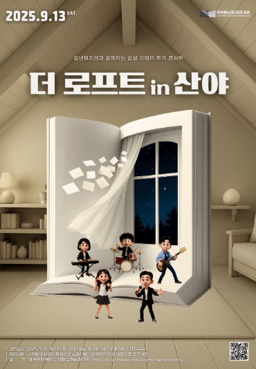 ‘더 로프트 in 산야’는 도서관의 음악 인재 육성 프로그램인 ‘레이블석영’에 선정된 밴드 ‘더 로프트’와 싱어송라이터 ‘산야’가 함께 꾸미는 감성 라이브 토크 콘서트로, 음악과 이야기가 어우러진 따뜻한 무대를 선보일 예정이다.