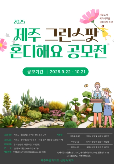 강애숙 제주도 기후환경국장은 “정원은 일상 속에서 지친 도민들의 마음을 위로하고 즐거움이 가득한 휴식공간”이라며 “정원을 통해 따뜻한 마음과 풍성한 이야기를 나눌 수 있도록 많은 도민의 참여를 바란다”고 말했다.
