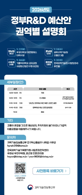 이번 설명회는 2026년도 국가연구개발사업 예산 배분·조정안의 주요 내용을 산·학·연 연구자와 관련 전문가 등 정책 대상자들에게 직접 설명하고, 현장의 목소리를 청취하기 위해 마련됐다.